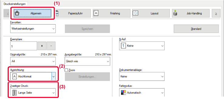 | Papierausrichtung | Druckergebnisse | |||