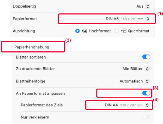 - Wählen Sie das Originalformat unter [Originalgröße] aus (z. B.: A5).