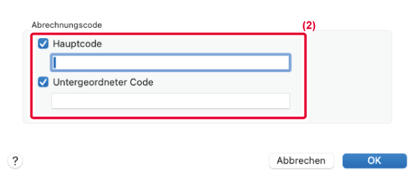 - Wenn Sie den Druck gestartet haben, ohne einen Abrechnungscode festzulegen, wird ein