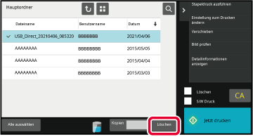 Überprüfen Sie die Datei und berühren Sie dann die Taste [Löschen].