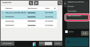 Sie können Dateien kombinieren, die mit der Dokumentenablage gespeichert wurden.