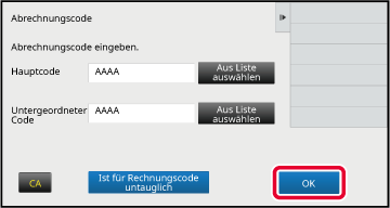 Wenn das Eingabefenster für den Abrechnungscode angezeigt wird, berühren Sie die Taste [Aus Liste auswählen] des Hauptcodes.