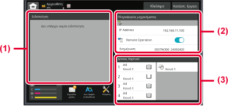 Θα εμφανιστεί η κατάσταση του μηχανήματος, όπως η κατάσταση σύνδεσης στο δίκτυο και