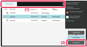 επεξεργασίας, πατήστε το πλήκτρο [Τροφοδοσία], [Ουρά Εργασ.] ή [Ολοκλήρωση], ανάλογα