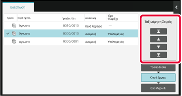 Πατήστε την εργασία που θέλετε να διεκπεραιωθεί κατά προτεραιότητα και στη συνέχεια πατήστε [ΑλληλουχίαΤαξινόμησης Εργασίας] στον πίνακα λειτουργίας.