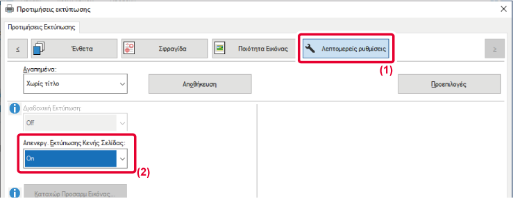 2. Στη ρύθμιση [On] επιλέξτε [Απενεργ. Εκτύπωσης Κενής Σελίδας].