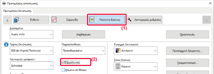 - Επιλέξτε [Image Quality] από τις "Printer Options".