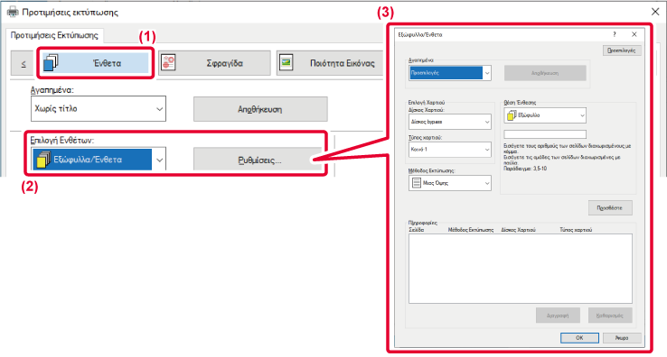 - Επιλέξτε [Εξώφυλλα/Ένθετα] από το [Επιλογή Ενθέτων] και κάντε κλικ στο κουμπί [Ρυθμίσεις].