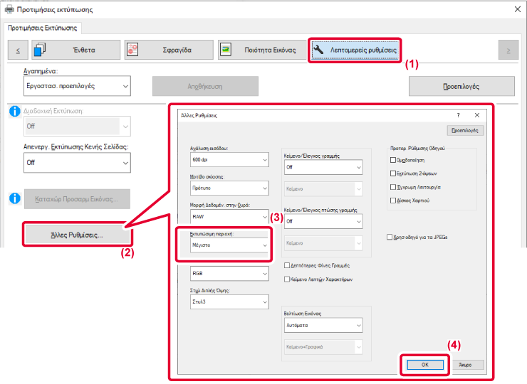 "Τρόπος Εκτύπωσης" έχει οριστεί σε [1200 dpi].