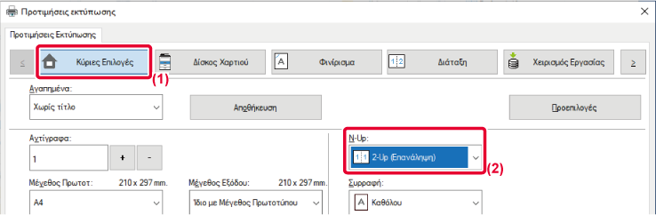 - Επιλέξτε τον αριθμό επαναλήψεων σε "N-Up".