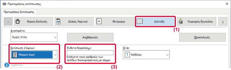 απευθείας έναν αριθμό σελίδας. Όταν η ρύθμιση "Μέθοδος Εκτύπωσης" έχει οριστεί σε