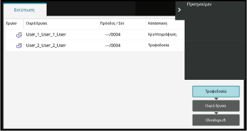 Εφόσον θέλετε να διακόψετε ή να διαγράψετε εργασίες ή να χρησιμοποιήσετε την κατά