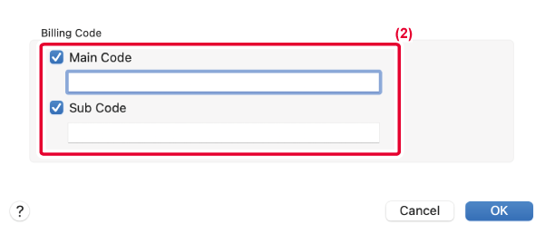Κατά την έναρξη της εκτύπωσης, θα εμφανιστεί η οθόνη καθορισμού του κωδικού χρέωσης.