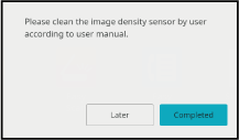 Tap the "Later" key to print, however, if you continue to use the printer with an image dirty density sensor, the printed image may be smudged.Turn off the machine.