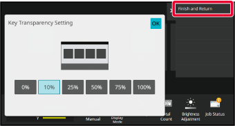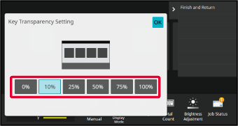 The settings are saved in the machine and applied.You can change the transparency of the shortcut keys.
