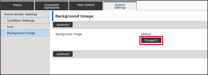 Tap [System Settings] → [Home Screen Settings] → [Background Image], and then tap [Change] key.