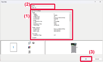 For explanations of the settings, see printer driver Help.When using this machine as a shared printer, if "Favorite" is set in the printer driver