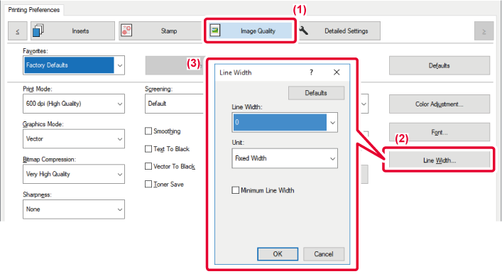 When the data includes lines of varying widths, you can print all lines at the minimum