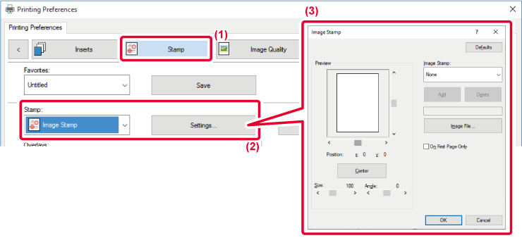 - Select [Image Stamp] from "Stamp" and click the [Settings] button.