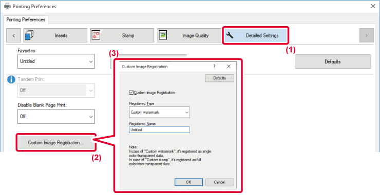 When [Custom stamp] is selected in "Registered Type", a full-color, non-transparent