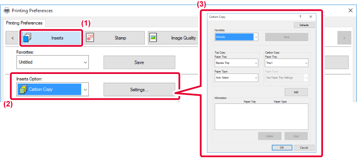 - Select [Carbon Copy] from "Inserts Option"and click the [Settings] button.