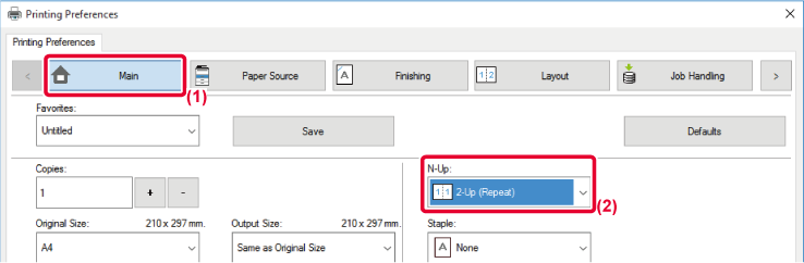 - Select the repeat count in "N-Up".