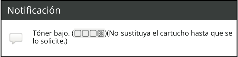 Cuando aparezca este mensaje, prepare un cartucho de tóner para realizar la sustitución.