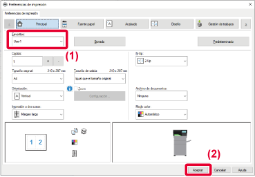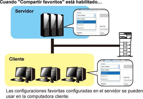 Para obtener más información sobre la configuración, consulte la Ayuda del controlador de la impresora.Cuando utilice esta máquina como impresora compartida, si ha definido como "Favorito"