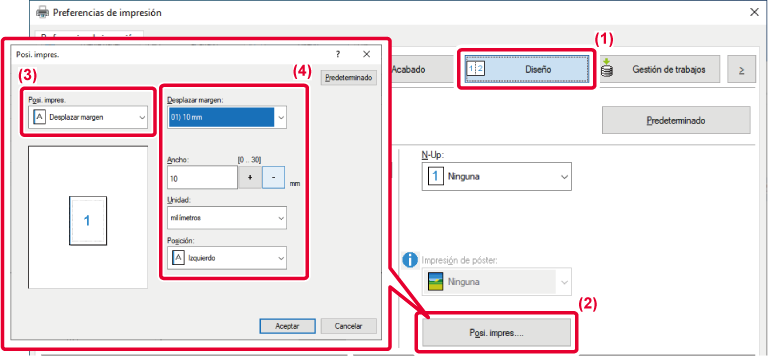 IMPRESIÓN CON CONFIGURACIÓN DE DESPLAZAMIENTO DE MARGEN (MARGEN)