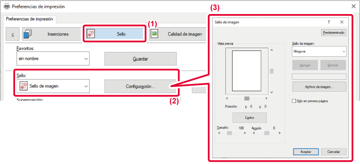 - Seleccione [Sello de imagen] en "Sello" y haga clic en el botón [Ajustes].