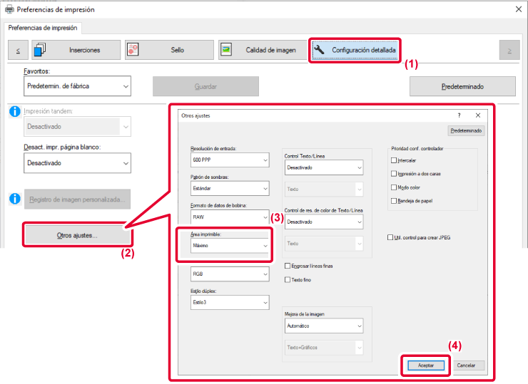 - Esta función puede usarse si se utiliza el controlador de impresora PCL6.