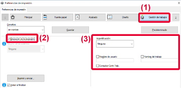 - Seleccione [Gestión de trabajos] en las "Opciones de la impresora".