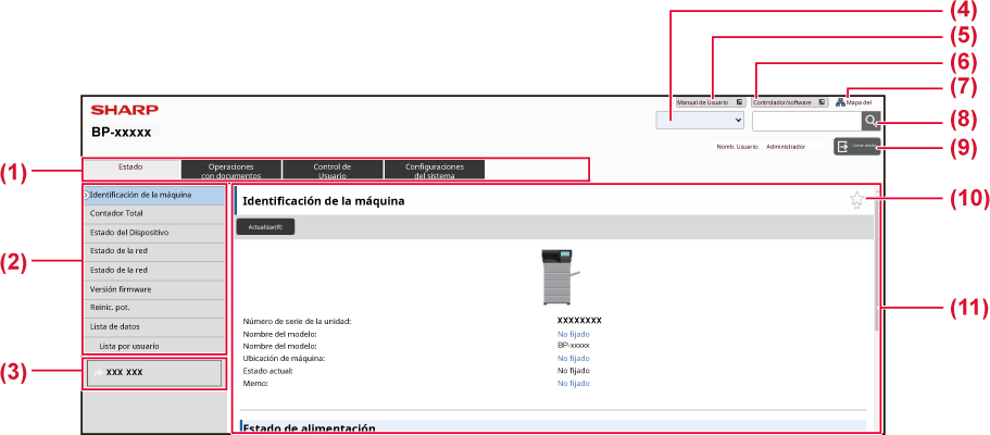 En esta pestaña se muestra el primer nivel del menú de configuración. Haga clic en