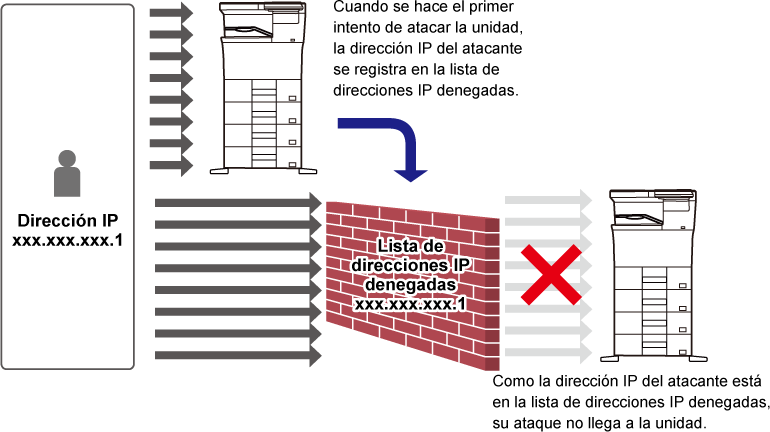 Especifique el archivado de documentos o la liberación de impresión como función para la restricción de los trabajos de la impresora. Cuando se ha especificado el archivado de documentos y se ha seleccionado [Forzar retención] como opción de Restringir operación, el trabajo se guardará en el archivo de documentos aunque no se haya especificado el archivo de documentos en el controlador de la impresora. Además, si se ha especificado la liberación de impresión, el documento se guardará en la liberación de impresión aunque la liberación de impresión no esté especificada en el controlador de la impresora. |