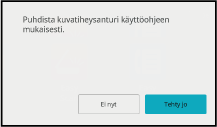 Kun tulee näkyviin viesti ”Puhdista kuvan tiheysanturi käyttäjän toimesta käyttöoppaan