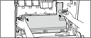 Paina vapautuspainikkeita hukkavärisäiliön molemmilla puolilla, työnnä hukkavärisäiliötä alaspäin, kunnes hukkavärisäiliö pysähtyy.