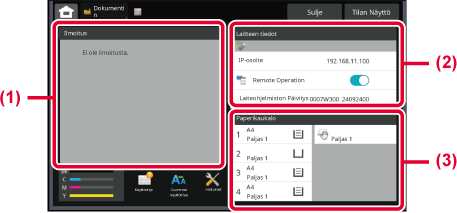 Laitteessa olevan paperin koko, tyyppi ja jäljellä oleva määrä näkyvät. Kosketa tähän