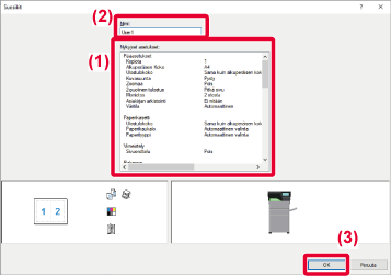 Lisätietoa asetuksista saat tulostinajurin Ohjeesta.Kun käytät tätä laitetta jaettuna tulostimena, jos ”Suosikki” on asetettu jaetun palvelimen