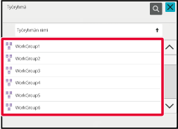 Kosketa sen työryhmän näppäintä, jota haluat käyttää vaiheessa 3 / "LAITTEEN ASETUKSISSA MÄÄRITETYSSÄ VERKKOKANSIOSSA OLEVAN TIEDOSTON TULOSTAMINEN".
