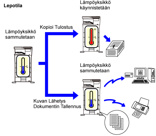 Työt, joita ei tulosteta, suoritetaan lämmitysyksikkö sammutettuna.