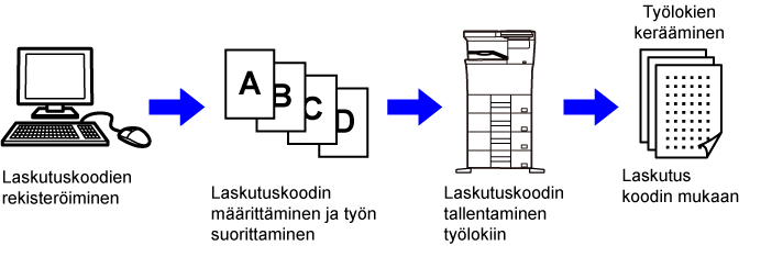 Käytetään suoritettujen tulostustyö tulosten luokitteluun tehokkaan hallinnan käyttämiseksi. Voit esimerkiksi määrittää asiakkaan mukaan koodin ja kerätä kustannustiedot asiakaskohtaisesti työlokeista. Koodiesimerkki: yrityksen A lasku |