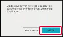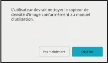 Lorsque le message "L'utilisateur devrait nettoyer le capteur de densité d'image conformément
