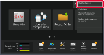 Les réglages sont enregistrés dans la machine et ils sont appliqués.Cette section explique comment modifier une touche de raccourci dans l'écran d'accueil.
