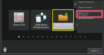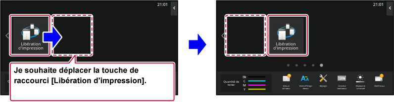 Les réglages sont enregistrés dans la machine et ils sont appliqués.Cette section explique comment déplacer une touche de raccourci dans l'écran d'accueil.