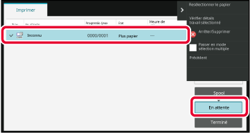 sur la touche [Spool], [En attente] ou [Imprimées] selon vos souhaits.
