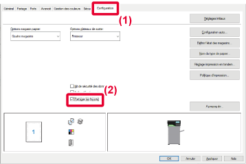 dans le pilote d'imprimante du serveur partagé, ce réglage peut également être utilisé
