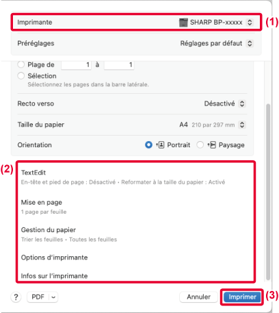 macOS supposent en général que macOS 14 est utilisé et qu'un pilote PPD est installé.