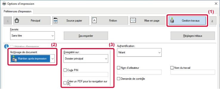 - Lors de l'exécution de l'impression de l'archivage de documents, en plus des informations