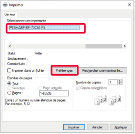 de réglages du pilote d'imprimante afin de pouvoir imprimer.*Pour plus d'explications sur les réglages, reportez-vous à la section "FONCTION D'IMPRIMANTE".