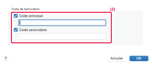 - Si vous avez lancé l’impression sans avoir spécifié de code de facturation, un code